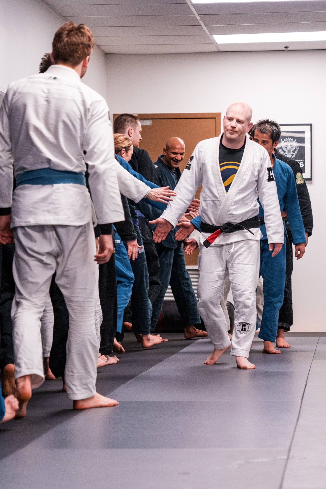 Centrally located in downtown Kitchener, Guardhouse BJJ offers a safe, fun, and supportive environment for everyone. The spacious training space features premium-quality Zebra mats on top of a spring subfloor, allowing you to train BJJ, takedowns, and judo throws in complete comfort. There are multiple restrooms and showers on site. Hygiene is of the utmost importance in our gym - the mats are cleaned with industrial-strength disinfectant daily, and flip flops are required to be worn at all times throughout the gym when off of the mats.